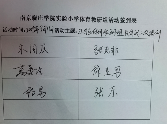为进一步贯彻江宁区体育教学工作会议精神,精准对接新学期区域体育教育重点任务,2025年9月19日上午,南京晓庄学院实验小学体育组召开区体育教研组长会议二次培训活动,由教研组长徐亚男老师主持并传达区级部署。
